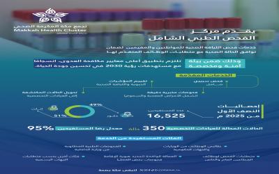 منصور نظام الدين:مكة المكرمة:- قدم مركز الفحص الشامل التابع للإدارة التنفيذية للصحة العامة والطب الوقائي بتجمع مكة المكرمة الصحي، خدماته لـ 16,525 مستفيد ومستفيدة خلال النصف الأول من العام الحالي 2025م، حيث أظهرت الإحصائيات توزيعاً متوازناً بين الجنسين، لتبلغ نسبة الذكور 49% والإناث 51%، مما يعكس شمولية الخدمات المقدمة لكافة فئات المجتمع. وأوضح تجمع مكة الصحي أن المركز يواصل تحقيق إنجازات لافتة في تقديم خدمات الفحص الطبي الشامل، مما يؤكد دوره الحيوي في تعزيز الصحة العامة بالمجتمع، كما يقدم خدماته الوقائية من خلال الفحص المبدئي للجهات الحكومية والخاصة، بالإضافة إلى القطاع غير الربحي من الجمعيات ودور الرعاية، مساهماً بفعالية في رفع مستوى الوعي الصحي والكشف المبكر عن الأمراض. و أضاف بأن المركز حوَّل 350 حالة إلى العيادات التخصصية خلال نفس الفترة في إطار جهوده لضمان الرعاية الصحية المتكاملة، وذلك بناءً على نتائج الفحوصات الأولية التي تستدعي متابعة طبية دقيقة. ويؤكد هذا الإجراء التزام المركز بتقديم خدمة لا تقتصر على الفحص فقط، بل تمتد لتشمل الإرشاد وتوجيه المستفيدين نحو الرعاية المناسبة. يؤكد تجمع مكة المكرمة الصحي إلتزامه بدوره الريادي في تعزيز صحة المجتمع من خلال الفحص الشامل والوقاية، بما يتماشى مع رؤية المملكة 2030 لقطاع صحي مزدهر ومجتمع حيوي.