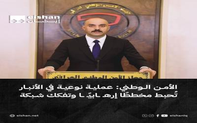 الأمن الوطني يعلن إحباط مخطط إرهابي في الأنبار بعد عملية استخبارية نوعية، أسفرت عن تفكيك خلية خطيرة والقبض على عدد من عناصرها، وضبط مخازن أسلحة وتجهيزات كانت معدّة لتنفيذ أعمال وشيكة، وذلك ضمن النهج الاستباقي لتعزيز الأمن والاستقرار.