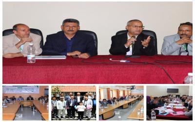 برعاية وحضور رئيس جامعة إب"وسط اليمن" الأستاذ الدكتور نصر الحجيلي أقامت كلية الهندسة بالتنسيق مع مركز التطوير وضمان الجودة ورشة العمل الخاصة باستحداث وتطوير وثيقة برنامج التصميم الداخلي وتحديث برنامجي الحاسبات والإتصالات بمشاركة 35 متخصصا.